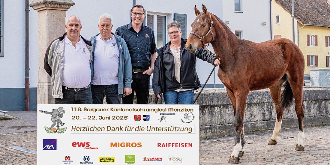 Das 118. Aargauer Kantonalschwingfest 2025 in Menziken vom 20. bis 22. Juni ist am Gedeihen. Und mit ihm natürlich auch die Lebendpreise, welche auf die drei Erstplatzierten Schwinger warten. Aus Termin- und Logistikgründen ging die Taufe des Fohlens bereits über die Bühne.